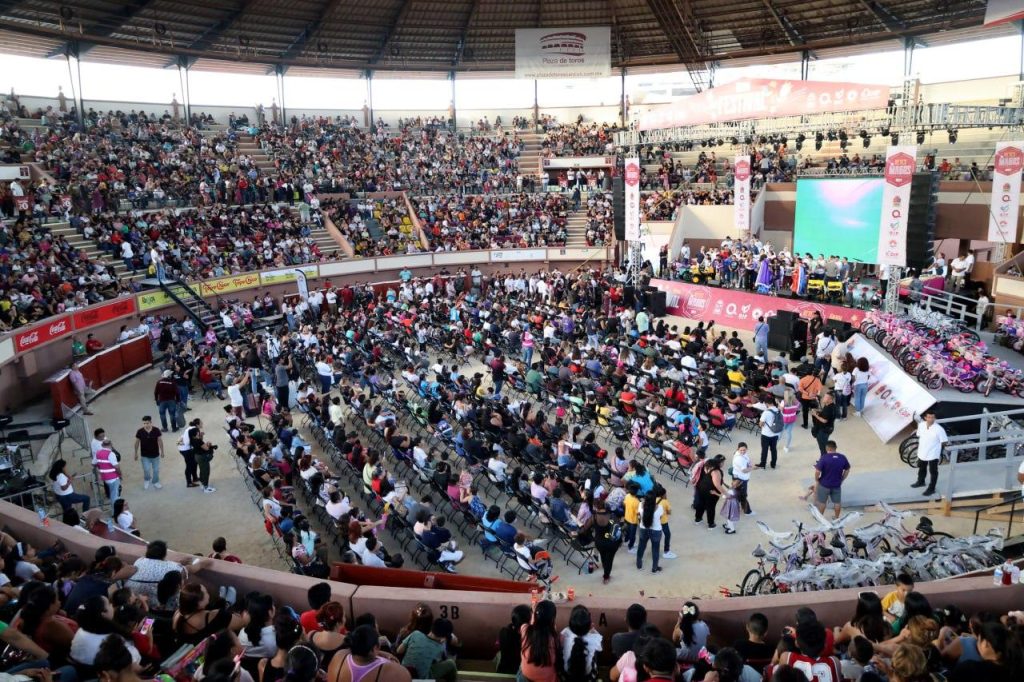 Cancún, Q. R., a 06 de enero de 2024.– Autoridades del Ayuntamiento de Benito Juárez y del Gobierno del Estado, a través de los sistemas DIF Quintana Roo y DIF Benito Juárez, celebraron en Cancún a más de 6 mil 500 niñas y niños en el Gran Festival Reyes Magos 2024 “El mejor regalo es la paz”, que se celebró en la Plaza de Toros, con regalos, rosca de reyes, sorpresas, música y alegría para los consentidos del hogar.